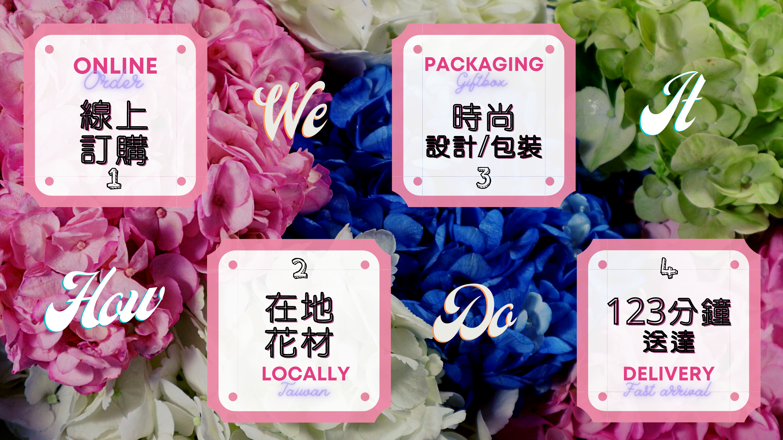 ✒︎則在營業時間內09:30-18:30,能夠123分鐘送達您訂購的桌花